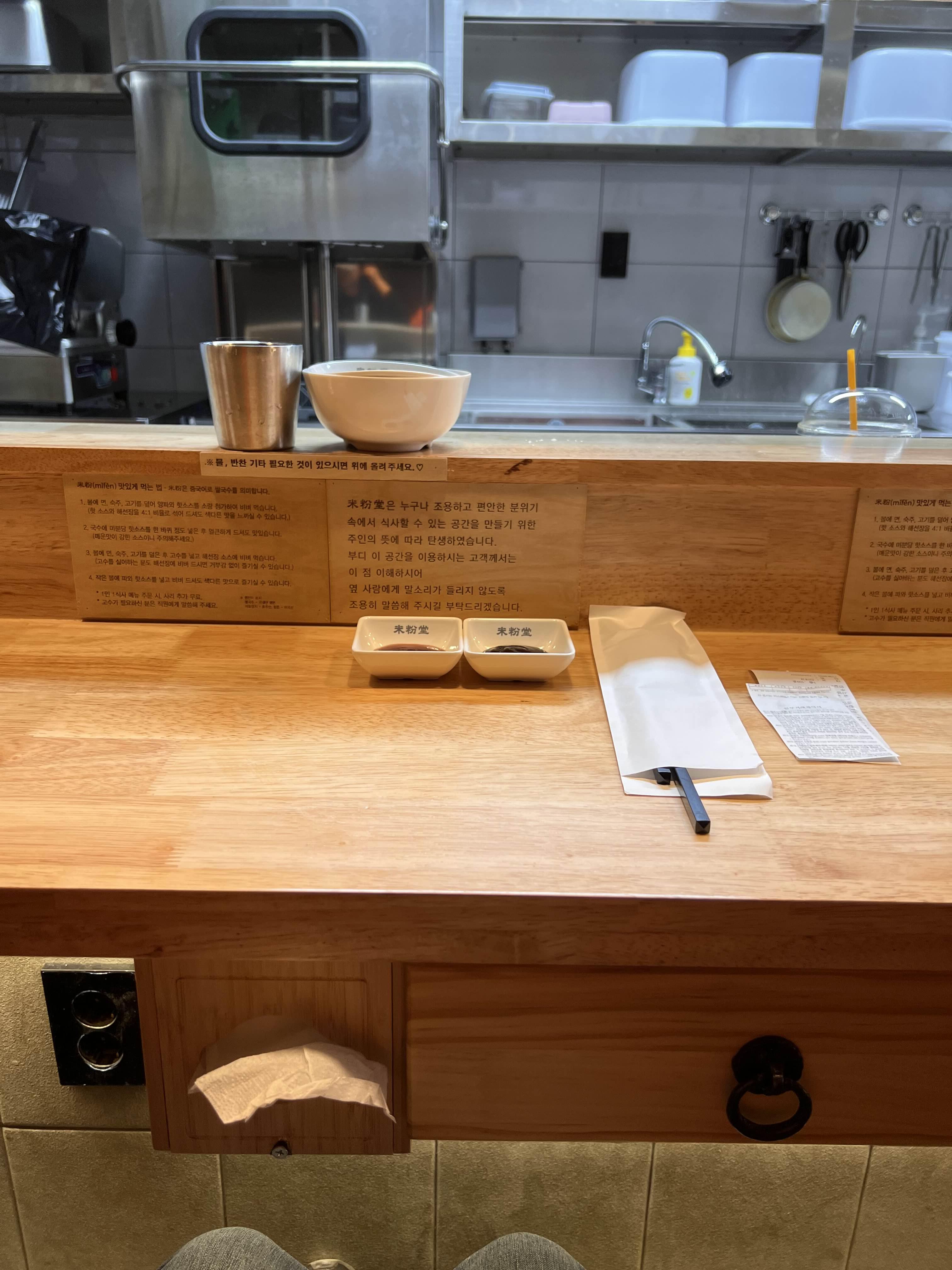 - 수저 휴지 등은 바 앞쪽에